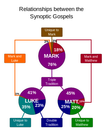 The majority view of modern scholars is that Mark was the first gospel to be composed and that Matthew (who includes some 600 of Mark's 661 verses) and Luke both drew upon it as a major source for their works. If so, the author of Matthew did not, however, simply copy Mark, but edited his source freely, emphasizing Jesus' place in the Jewish tradition and adding large blocks of teaching. An additional 220 (approximately) verses, shared by Matthew and Luke but not found in Mark, form a second source, a hypothetical collection of sayings to which scholars give the name "Quelle", or the Q source. This view, known as the Two-source hypothesis (Mark and Q), allows for a further body of tradition known as "Special Matthew", or the M source, meaning material unique to Matthew; this may represent a separate source, or it may come from the author's church, or he may have composed these verses himself. The author also had at his disposal the Jewish scriptures, both as book-scrolls (Greek translations of Isaiah, the Psalms etc.) and in the form of "testimony collections" (collections of excerpts), and, finally, the oral traditions of his community. These sources were predominantly in Greek; although a few