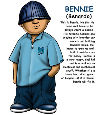 The fist time Andes be it mijos hood when his dad move their because his dad got a big job and Memphis tn.Hi I the new kid in mijos hood said Andes to his new next door nabors Bernardo hi they call me Bennie said Bernardo.Cool said Andes they call me Lil Dre in my old nabors hood hi what the school call Bennie the school call mijos Elementary school it cool and fun and by the school is mijos park where we kick at come on I going show you some popular people on the hood hi that goes crybaby way do you call him crybaby Andres said I is not the only person who call him that and his name Carlos crybaby is so whiny that he watches cartoons on Saturday.