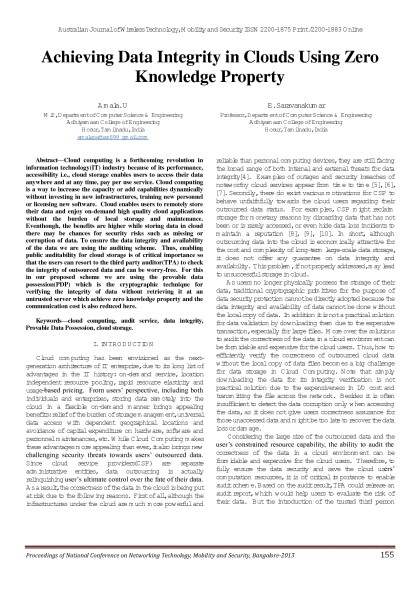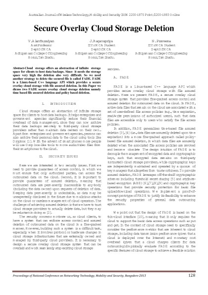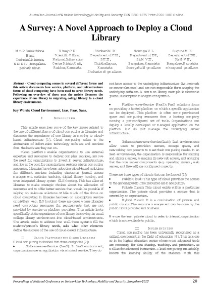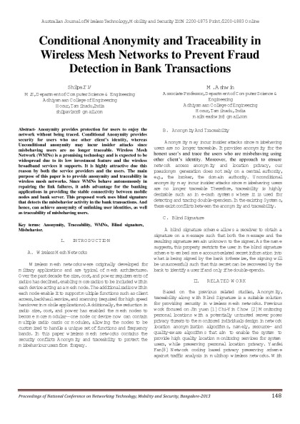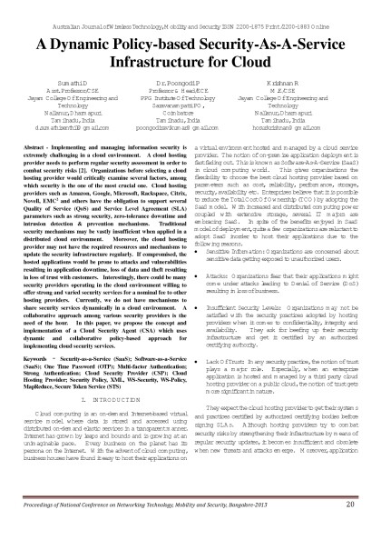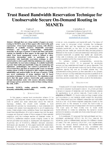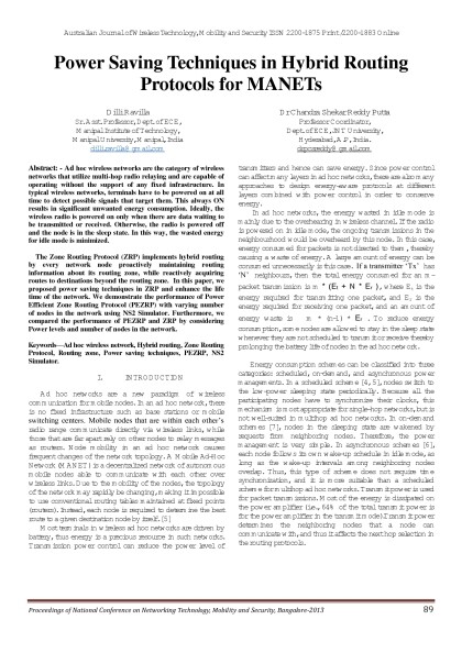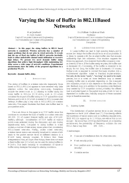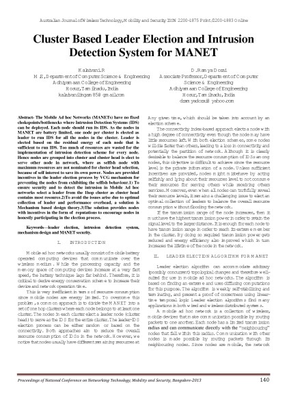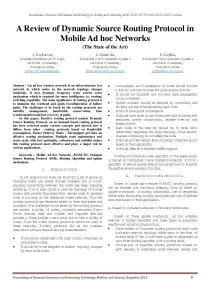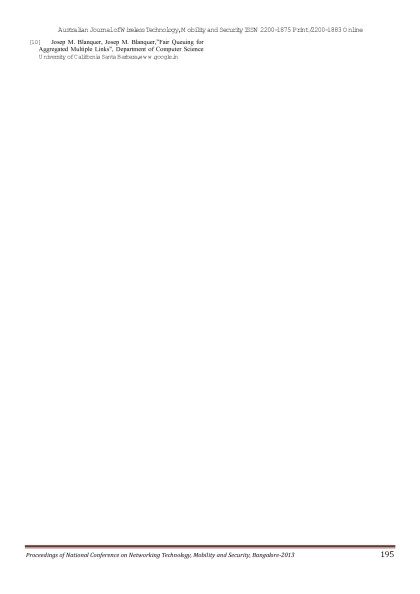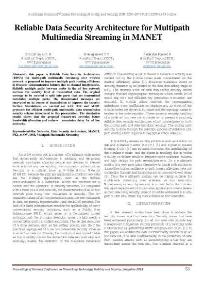 Australian Journal of Wireless Technologies, Mobility & Security- March 2013 Issue - Proceedings of First National Conference on Networking Technology,Mobility and Security 2013 Bangalore