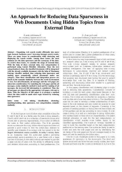 Free ebook «Australian Journal of Wireless Technologies, Mobility & Security- March 2013 Issue - Proceedings of First National Conference on Networking Technology,Mobility and Security 2013 Bangalore» - read online now