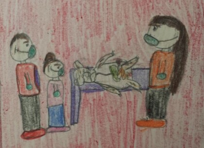 "Ok, you can stand right here." said Dr. James to Mary. "Before we get started we all, need to all put on latex gloves so that we don't get germs on our hands or get germs into Ticha's system. We will also all need to put on masks so that we don't breath into Ticha's system." Dr. Ann suggested. "Thanks for the gloves and mask!"said Mary excitingly.