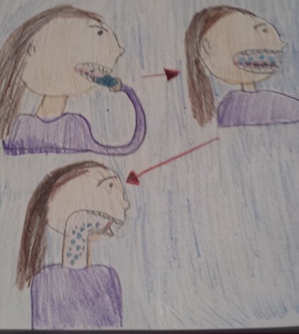 "I have another question for you! What is the first step of the digestion process?" asked Mary. "The first part of the digestion process is putting food into your mouth. Then your teeth begin to make the food smaller to swallow. After your teeth makes the food samller your saliva makes your food softer. Then the last thing that happens during the first step of the digestion process is, when your tongue takes a part. The tongue helps swallow the food by pushing the food back to the throat for when you swallow the food." Dr. James explained. "That makes since! Thanks Dr. James!" said Mary.