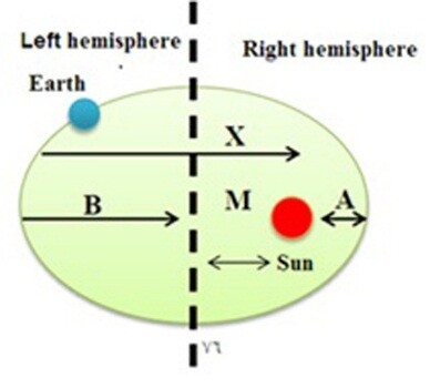(B + M)> A, since the distance X is larger than the distance A, then the black vacuum’s repulsion rate is less than the black vacuum of the earth. So the velocity of rotating the earth in the right part is higher than the left.