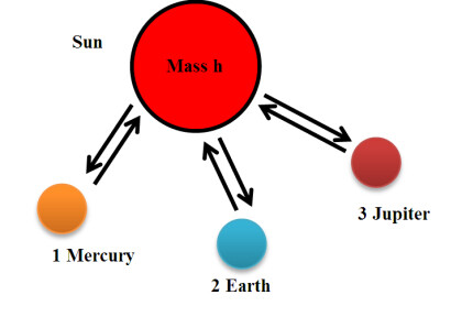 All masses 1, 2, and 3 are at a distance from h. So the gravitational force of the sun absorbs and destroys Mercury or 1.