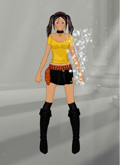 The next day, Petra called her new friends in the same room where they arrived on Wiearth. The Element Girls saw that a pale skin girl, with purple short hair and dark green eyes was talking to Petra.