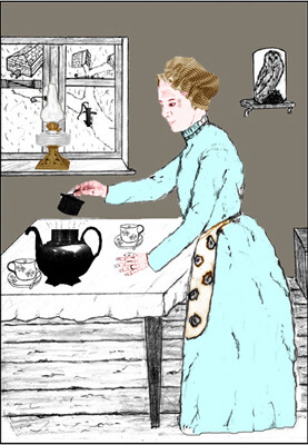 “I’d better be getting on,” she said, “there’s lots to do before father and I retire. There’s a snuff on the side of the candle holder when you want to put the candle out and there’s a pot under the bed, just in case it’s needed,” she said, disappearing through the doorway. “I ‘ope’ you sleep well.”