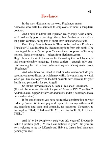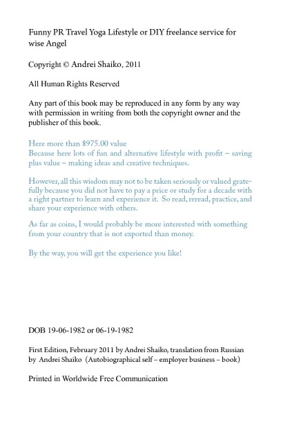 Funny PR Travel Yoga Lifestyle or DIY freelance service for wise Angel, translation from Russian by Andrei Shaiko (Autobiographical self β employer business β book) 49 page by Andrei Shaiko (free biff chip and kipper ebooks TXT) π