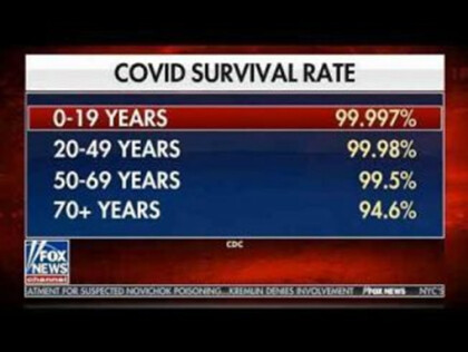 For instance, this means a child has a 0.003% chance of dying from Covid, which is practically zero.