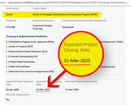 The World Bank shows that COVID-19 is a project that is planned to continue untilā¦end of March 2025! So the intention is to continue it for another FIVE YEARS.