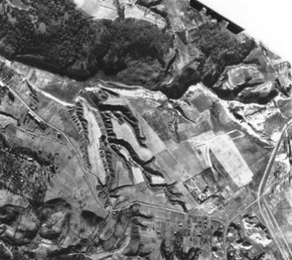 This series of reconnaissance photos demonstrates that the flora and the ground cover of the ravine remained undisturbed throughout the two years of German occupation. When the early and late photos are compared, it is obvious that the scattered trees grew and became slightly larger. No evidence of human or large animal activity in the ravine can be discerned on the many aerial photos of Babi Yar taken repeatedly in different seasons of the years 1939-1944.