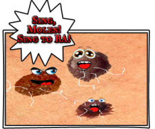 But the thing that freaked me the most and made me want to grab my daughter and dunk her into a vat of SPF Lead to keep her from any UVA/UVB harm happened when Creepy Mole Lady returned to her lounge chair. She completed the ceremonial spreading of the oil so that she could lie down on her stomach and turned her back to me before she lay down. Thatâs when I really saw them...all three of them...in all their creepy, blackened, misshapen, larger than a pencil eraser glory. My Lord! I declare if they had mouths, I bet they couldâve broken out into a wicked three-part harmony as they extoled the virtues of Ra, the Ancient Egyptian Sun God!