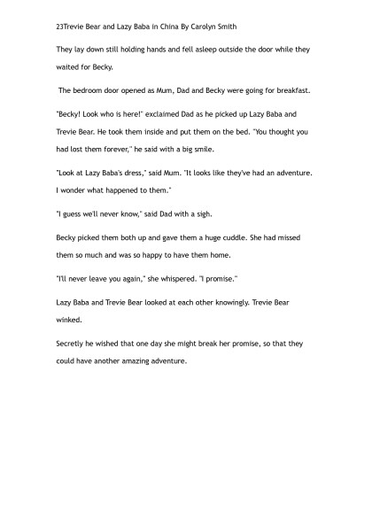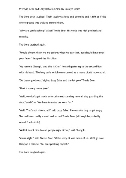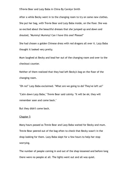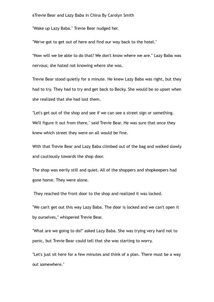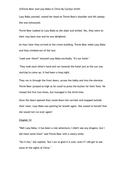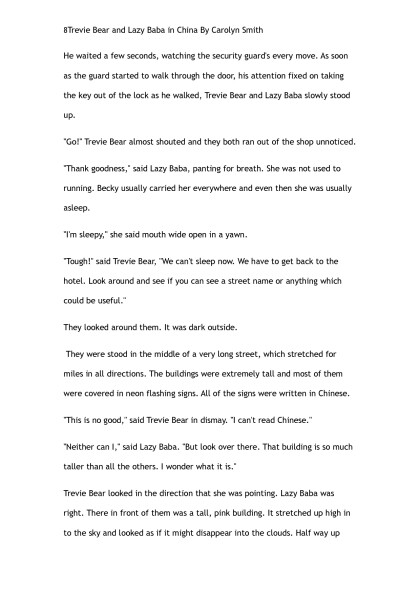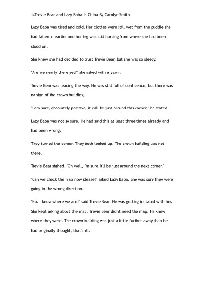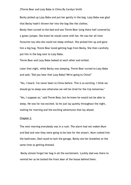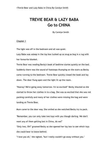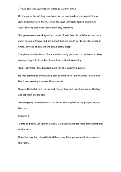 Trevie Bear & Lazy Baba go to China by Carolyn Smith (the rosie project TXT) ๐