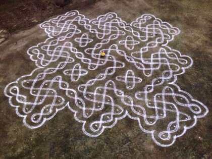 Kolam is a divine art that gives a woman the freedom to express herself in different patterns of kolams. This ancient art with intricate patters and designs using curved lines, straight lines and circles is a blessing for the Tamil community.