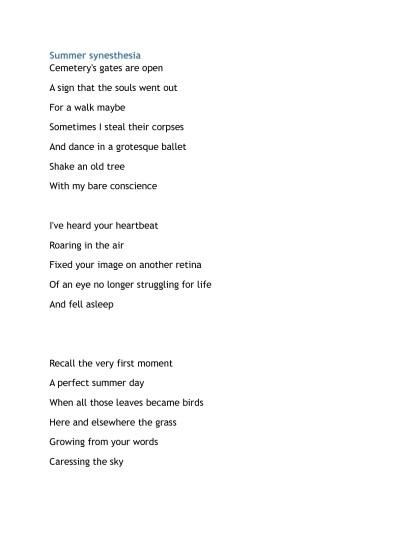 One of the ancients,once said that poetry is "the mirror of the perfect soul." Instead of simply writing down travel notes or, not really thinking about the consequences, expressing your thoughts, memories or on paper, the poetic soul needs to seriously work hard to clothe the perfect content in an even more perfect poetic form.