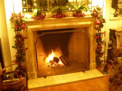 the fire in the fireplace