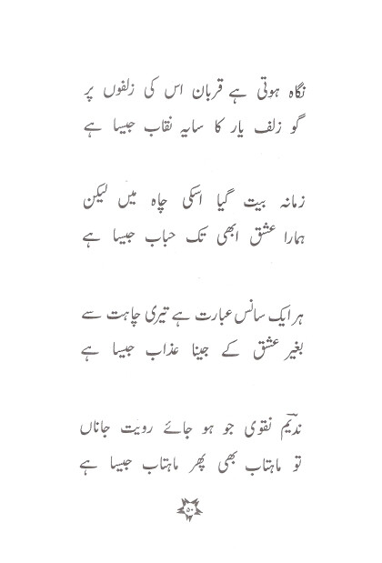 Dr. Nadeem Abbas commonly known as Nadeem Naqvi an Urdu poet, scholar and littérateur from Pakistan. He is a land mark in the field of health care administration His Poetry style is romantic and religious. He has headed Darul Shifa General Hospital An ISO9000 Certified organization with the modern and sophisticated facilities of the field of health care administration, CEO of The Irtiqa Publication, A plate form who facilities those who can not published there books due to financial reasons and he is the Co-Editor of Guftoogu a German Urdu magazine on Urdu Adbiyat which has been published from Pakistan and Germany. Nadeem Naqvi is a poet of Urdu. Three of his collections, PIASA DARYA, BARGAH E ISHQ and BOO E DOOST have been published. He has done his PhD in 1996 His PhD Theses "Modern Concept of Health Care Administration" available in Book form. The subject matter of "Health care Administration" is the foundation of any health care provided organization.