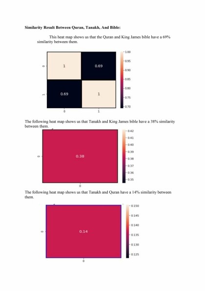 This heat map showed that the Quran and King James bible have a 69% similarity between them.