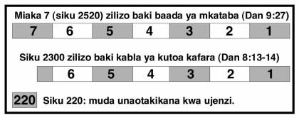 Tofauti kati ya tarakimu hizi mbili (siku 2520 na siku 2300) ni muda unaoweza kuchukuliwa kujenga Hekalu. (Tazama jedwali.)