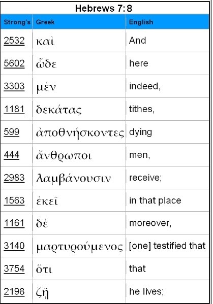 Word-for-Word Greek-to-English Translation of Heb 7:8,