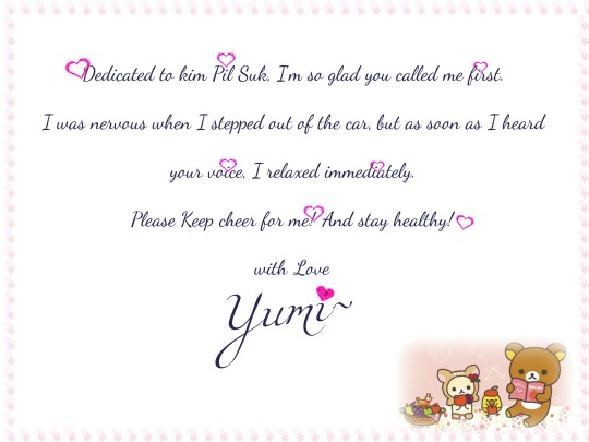 “jeonun Kim Pil Suk Imnida.” She answered with a tiny voice.