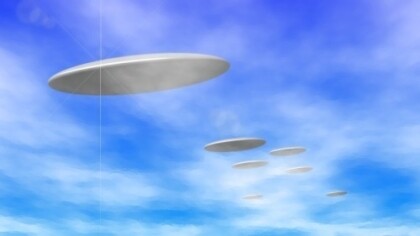 ... Suddenly we saw how the eight remaining black fighters began to totter in turn, began to vibrate in an ever-faster pace and finally exploded. Also, our discus changed course, was collected and passed slowly to the ground. When we were able to get out safely, materialized at once about 10 absolutely smooth and shapely disks over our heads.