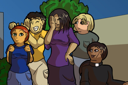 The students obeyed the Pink Ranger without dispute, and soon everyone was in the bus. The Blue Ranger boarded the bus after all the kids were in and had sat down.