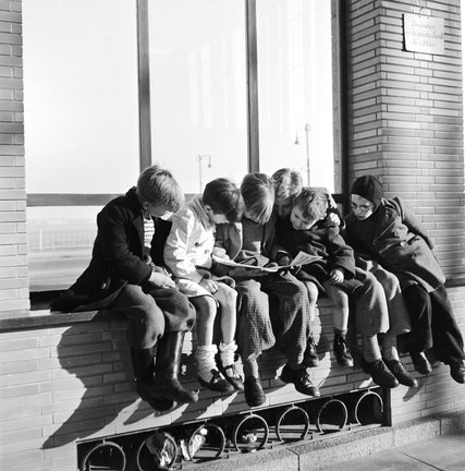 Schoolboys sitting on a window sill squeeze together to get a better look at a comic book in 1955. In 2014, the average American spent 19 minutes a day reading.CreditVan Ophuysen/BIPs, via Getty Images