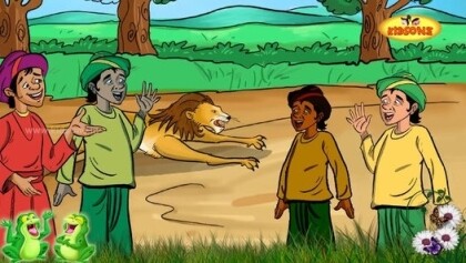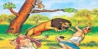 They said," You didn't know any skill", How can we take your advice? They started their journey with Bholu. On the point of journey, they got tired. They decided to take rest. They sat under a tree. In that place there was nothing except a pile of bones. Jay said," I think, these are bones of lion". Vijay said," Why should we not try our skills in this dead lion"? Jay rearranged all bones and gave the structure of lion. Vijay covered the skeleton with skin.