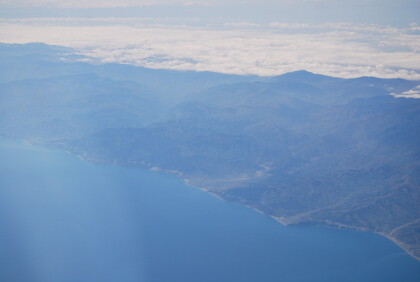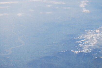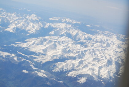 We flew parallel to the Alps and passed the Lake of Geneva, which, however, under a cloud formation was obscured at low altitude. In Toulouse in France, we flew over the AIRBUS manufacturing premises with the large airfield. After our plane flew over Toulouse, the pilot changed the flight direction to the south and we crossed after a short time the Pyrenees.