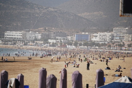 Wonderful walks on the wide sandy beachThe beautiful beach (10 km long and up to 200 m wide) is certainly the particular attraction of modern Agadir. On the back of our "Agadir Beach Club Hotel" was a door through which you could easily go on the beach boardwalk to the beautiful sandy beach. Through this door " smuggled " we also unobserved drinks into the hotel - although it was not officially allowed. The door to the beach was closed every night by 19 clock 30.