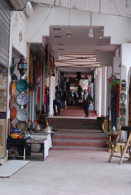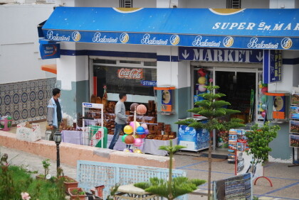 The following day was the motto: " New game - new luck ". We had learned from the very helpful lady at the hotel information that could be quite inexpensive taxi ride (20 dirhams, or about 2 euros) to a very large supermarket ' Marjane ' . There you would get everything - in addition to drinks and fruit also clothing and shoes. The latter (swimsuit , shorts and sandals) we were able to buy very reasonably priced. On the way back by taxi to the hotel I discovered in the vicinity of a shopping arcade laying at the right hand from the hotel (the day before we were to the left hand went to the city center) and was easy to reach after a walk of 10 minutes.